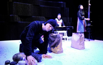 Teater Pero arbetar med mim som grund, tillsammans med musik och dialog.
